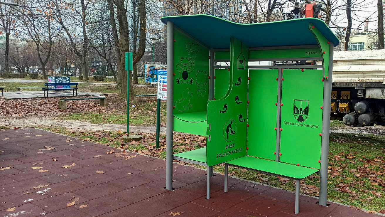Baby svlačionica je namijenjena za presvlačenje beba na javnim površinama, igralištima i parkovima. Nudimo custom-made brendiranje, tako da investitori mogu birati boju, vizual i dodati svoj logotip. Konstrukcija je dizajnirana da se jednostavno montira na podlogu.